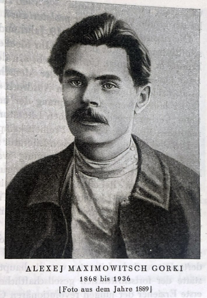 Gegen Ende des 19. Jahrhunderts brachte die junge Arbeiterklasse Russlands ihren genialen Künstler, den großen proletarischen Schriftsteller Alexej Maximowitsch Gorki hervor. Er wurde am 16. März 1868 in Nishnij-Nowgorod in der Familie eines Kunsttischlers geboren. Nach dem frühen Verlust seines Vaters begann für ihn mit dem 10. Lebensjahr ein arbeitsames, an Entbehrungen und Umherwandern reiches Leben. Seine schwere und freudlose Kindheit beschrieb Gorki in den vortrefflichen Büchern „Kindheit“ und „Unter fremden Menschen“. Schon in seiner Jugend machte er sich mit den Revolutionären bekannt. Sein herz entflammte in zornigem Protest gegen die Ausbeuter, brannte in heißem Mitgefühl für die Unterdrückten und Ausgebeuteten. Diese Gefühle des jungen revolutionären Schriftstellers fanden in seinen Werken ihren Niederschlag. Im Jahre 1901 ertönte wie Sturmgeläut das berühmte „Lied vom Sturmvogel“, das zur Revolution aufrief. „Mag der Sturm noch stärker brausen“, rief der Dichter, der dafür den Beinamen „Sturmvogel der Revolution“ erhielt. Schon zu jener Zeit wurde Gorki der Lieblingsschriftsteller nicht nur des russischen, sondern auch des westeuropäischen Proletariats.