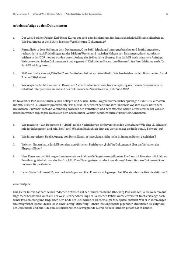 - Der Westberliner Polizist Karl-Heinz Kurras bot 1955 dem Ministerium für Staatssicherheit (MfS) seine Mitarbeit an. Wie begründete er den Schritt in seiner Verpflichtung? (Dokument 2)