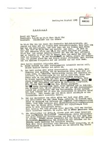- Zur Zeit werden alte Akten überarbeitet, mit dem Ziel, neue Hinweise über Agenten, die in Westberlin tätig sind oder gewesen sind, zu erhalten. Gleichzeitig werden mit Hinweise erarbeitet, um Verbindungen in der DDR zu schaffen. Diese Hinweise sind an den amerikanischen Sicherheitsoffizier abzugeben. In diesem Zusammenhang hat „Bohl“ eine Akte bearbeitet, über einer ehemaligen Westberliner Kripo namens P. Dieser P. hat für das MfS gearbeitet und wurde in Westberlin verurteilt. Nach seiner Haft ist P. ins demokratische Berlin gegangen. Der P. wurde festgenommen durch einen Spitzel der in Weissensee wohnhaft ist. Dieser Spitzel hat mit dem MfS zusammengearbeitet und gleichzeitig für den Verfassungsschutz. Dieser Spitzel ist „Bohl“ bekannt und er wird die Personalien im nächsten Brief mitteilen. „Bohl“ konnte mir den Namen nicht nennen, da er die Personalien nicht auswendig kannte.