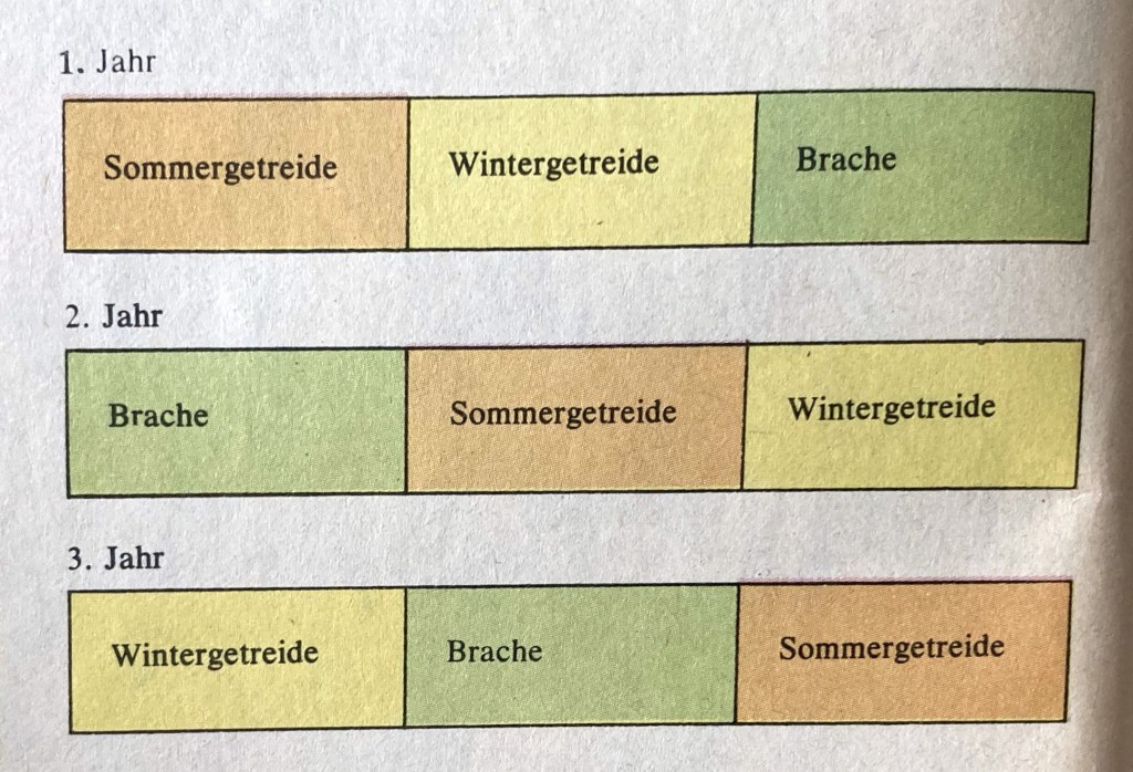 Seit 800 gingen die Bauern in den feudalen Grundherrschaften zur Dreifelderwirtschaft über.