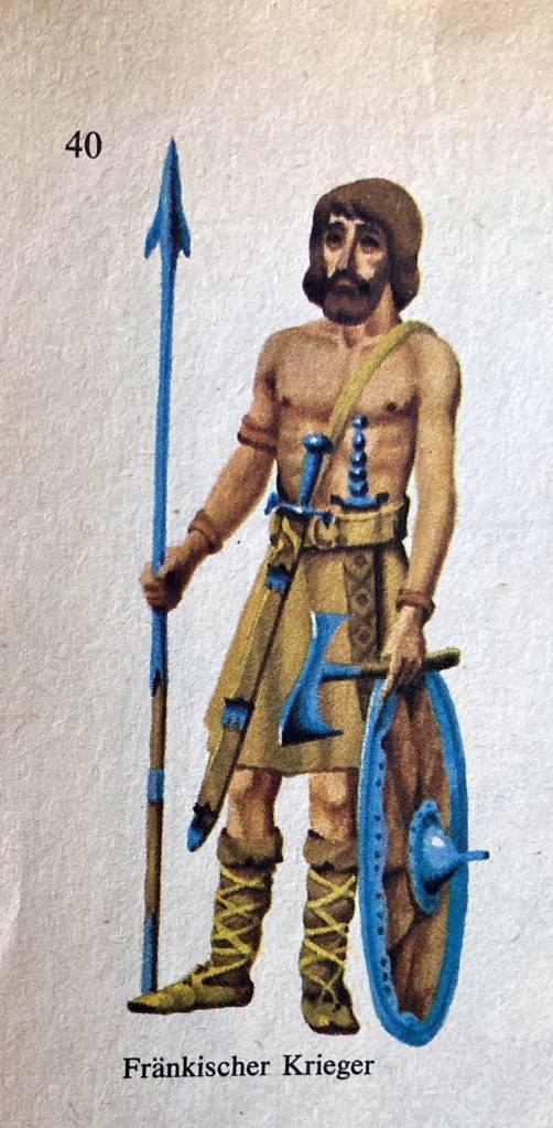 Ständig waren sie bestrebt, neues Land für den Ackerbau zu gewinnen. Deshalb überfielen sie oft andere Völker. Der König eines fränkischen Stammes, Chlodwig, fiel mit seinen freien Kriegern in Gallien ein und besiegte im Jahre 486 den römischen Statthalter und sein Heer. Damit hatten die Franken die Reste der römischen Staatsmacht und zugleich die Sklavenhaltergesellschaft in Gallien beseitigt.