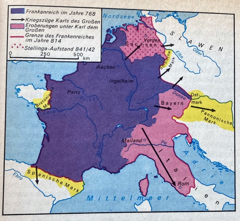In den folgenden Jahren zog Karl nach Italien. 774 besiegte er die Langobarden und 788 auch die Bayern.