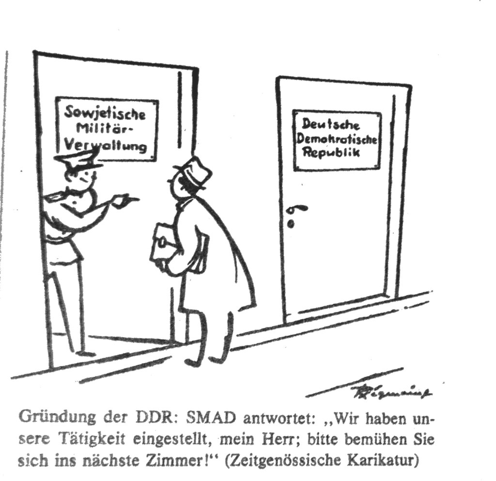 Am 10. Oktober 1949 übergab der Chef der SMAD, Armeegeneral Tschuikow, die bisherigen Verwaltungsfunktionen der sowjetischen Besatzungszone an die Regierung der DDR.