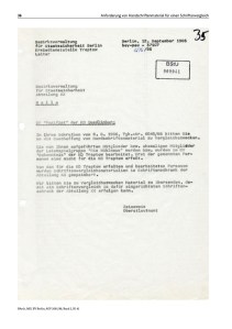 Zuarbeit der KD (Kreisdienststelle) Treptow für die Bezirksverwaltung der Staatssicherheit Berlin (Auszug)