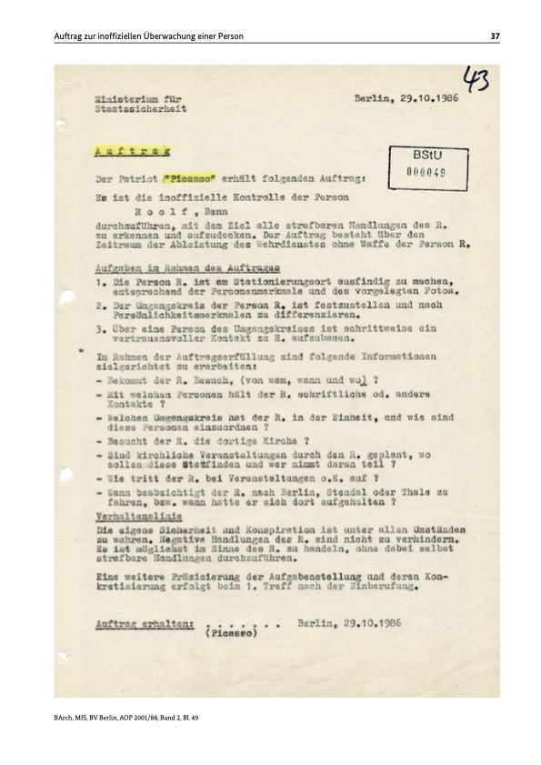 Im Rahmen der Bearbeitung des OV „Bekenntnis“ wurde beim Treff am 30.04.1987 mit dem IMB „Roland“ folgender Sachverhalt bekannt- Der IMB ist überprüft. Ehrlich und zuverlässig.