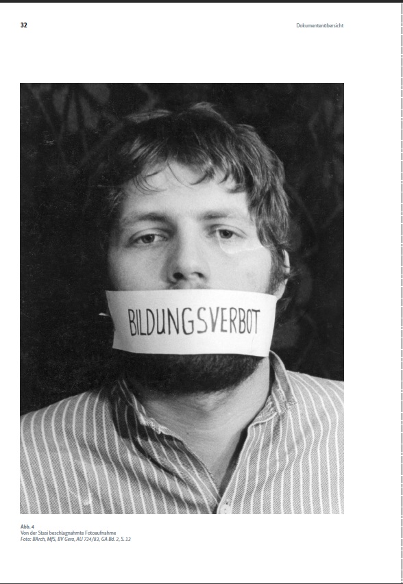 Im Herbst 1981 ließ er von Bekannten, die später als Zeugen auftraten, Porträtaufnahmen herstellen, auf denen er mit einer Mundbinde mit der Aufschrift „Bildungsverbot“ dargestellt ist. Das Gericht hat nicht bemerkt, dass diese Darstellung geklaut ist. Sie stammt aus der Bewegung gegen die Berufsverbote in der BRD. Das MfS hätte es wissen und dem Gericht mitteilen müssen. Das unterblieb aber. Warum? Herr Jahn verhöhnte damit die Opfer von Berufsverboten in der BRD. Das wäre eine Extra-Strafe wert gewesen. Gab es da falsche Rücksichtnahme gegenüber der BRD? War es ein Stück Kapitulation?